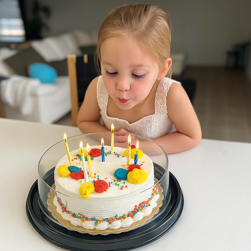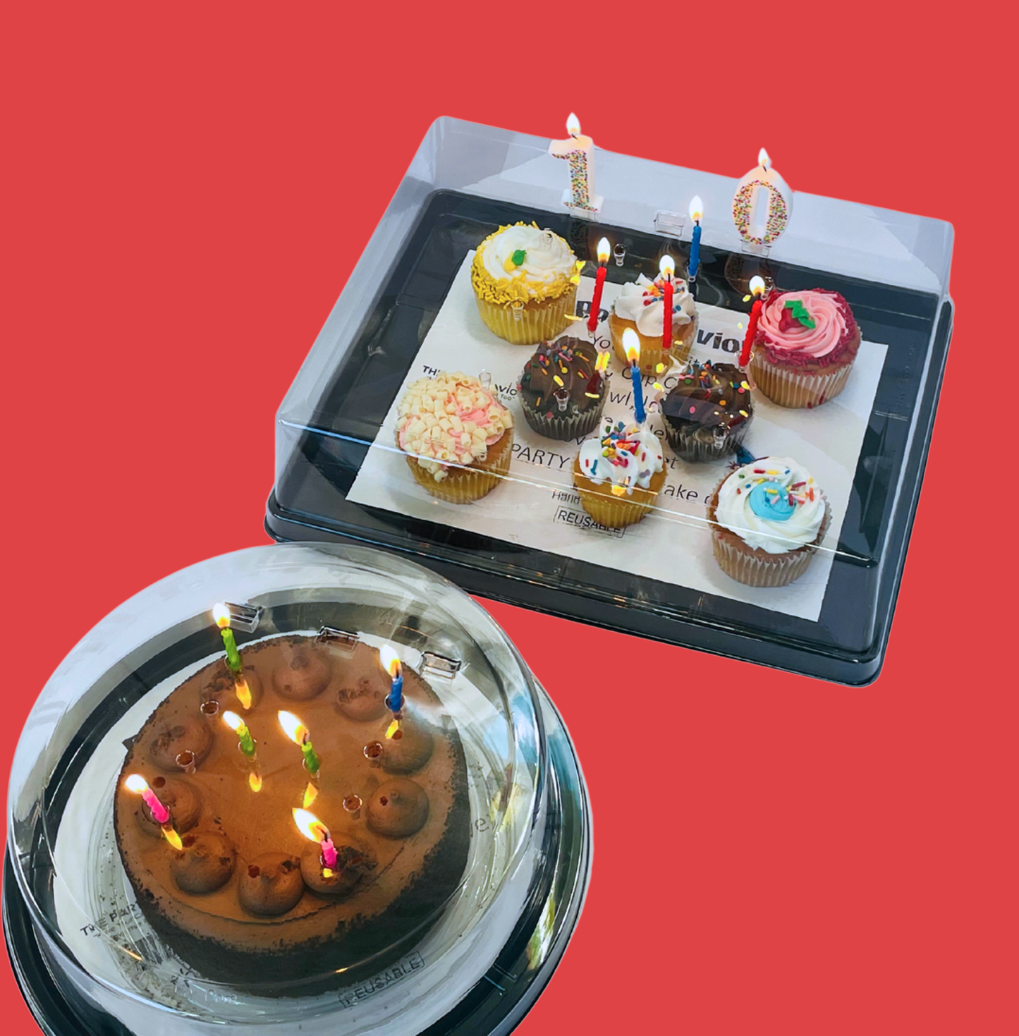 Celebrate with confidence using our Bundle Cake Covers Package, featuring both Circular and Rectangular Cake Covers. Designed to fit all cake shapes and sizes, this versatile bundle is also perfect for cupcakes. Each cover includes convenient openings for candles, ensuring a safe, germ-free celebration while preserving your treats' freshness and beauty. Perfect for birthdays, weddings, special and corporate events, this bundle provides the ultimate combination of style, convenience, and protection from germs (and spit)!